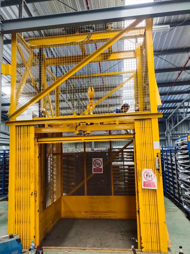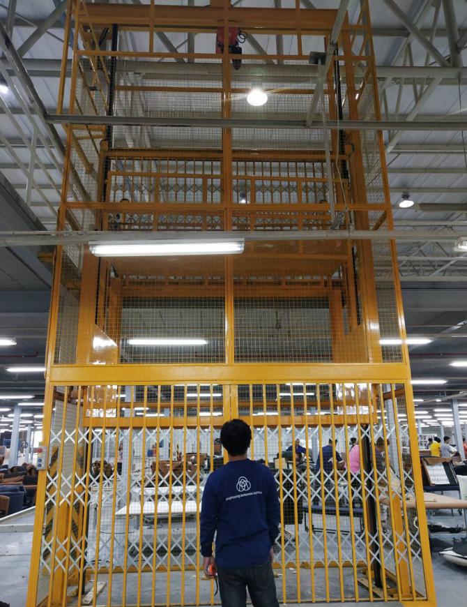 โดยในรูปภาพลิฟท์นี้เป็นส่วนหนึ่ง ของงานที่เรารับทำลิฟท์ขนส่งสินค้าให้กับโรงงานแห่งหนึ่งที่เขตกรุงเทพบางนาซึ่งเป็นลิฟท์สินค้าขนส่ง 2 ชั้น ที่สามารถรับน้ำหนักและขนสินค้าได้จำนวนมากตามที่ลูกค้าได้กำหนดสเปคไว้ ลิฟท์เราได้ทาสีเหลืองสดใสและมีตะแกรงเหล็กล้อมรอบเพื่อความปลอดภัย ในด้านการใช้งานลิฟท์ก็สามารถใช้งานได้ง่ายเนื่องจากมีปุ่มควบคุมที่ผู้ใช้สามารถเรียนรู้ได้ด้วยตนเองได้อย่างง่ายดาย